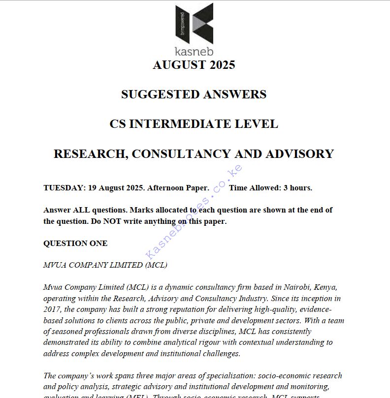 Download August 2025 Research, Consultancy and Advisory Past Paper answers in Pdf form