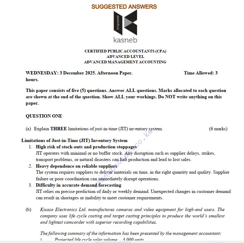 Download December 2025 CPA Advanced Management Accounting Answers in Pdf form