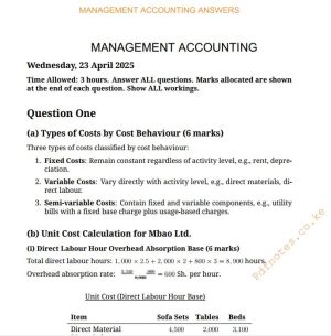 Management Accounting Past Papers Answers (Revision Kit)